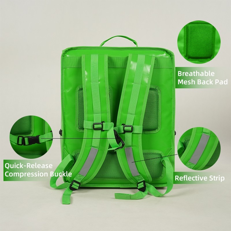 Professional 69L waterproof insulated delivery backpack. 840D PVC, thermal EPE lining, and customizable corporate design. ISO9001/BSCI certified factory supply for global logistics fleets.