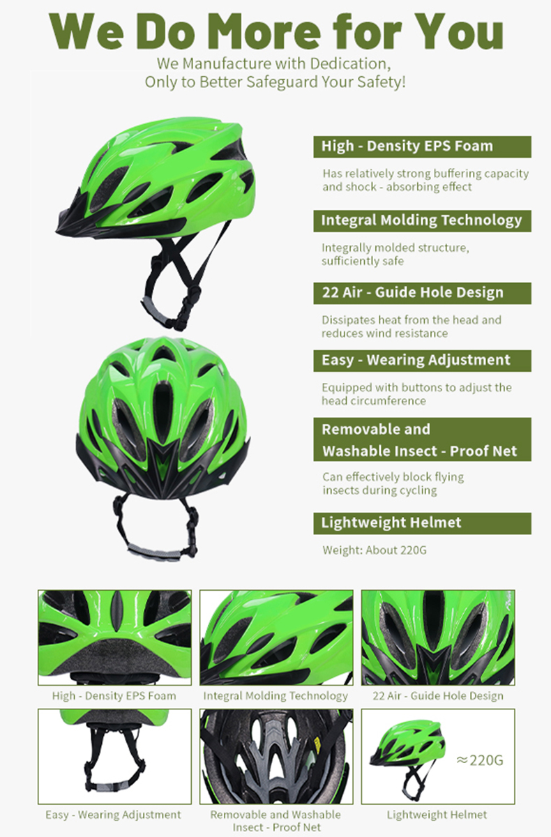 Our lightweight green half helmet is designed for food delivery riders and cycling use. With multiple ventilation holes, it ensures maximum airflow and comfort during long shifts. Perfect for businesses, courier fleets, and distributors, this helmet is customizable in color, size, and logo, supporting large-scale bulk orders with fast delivery.