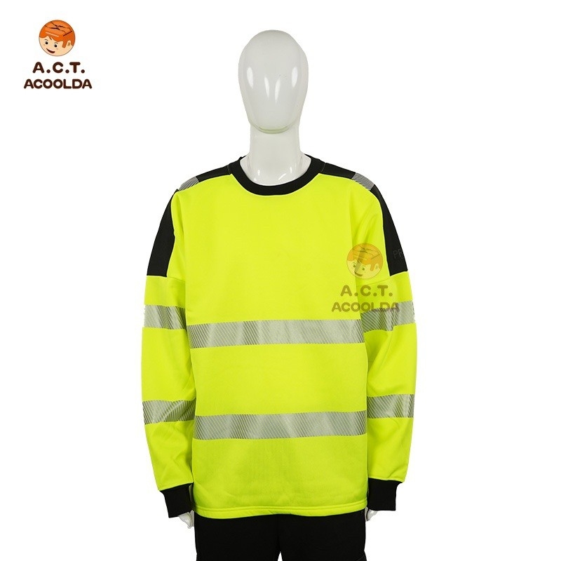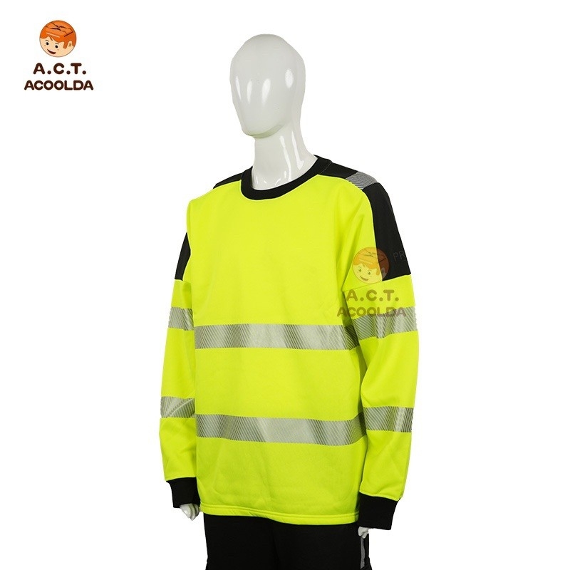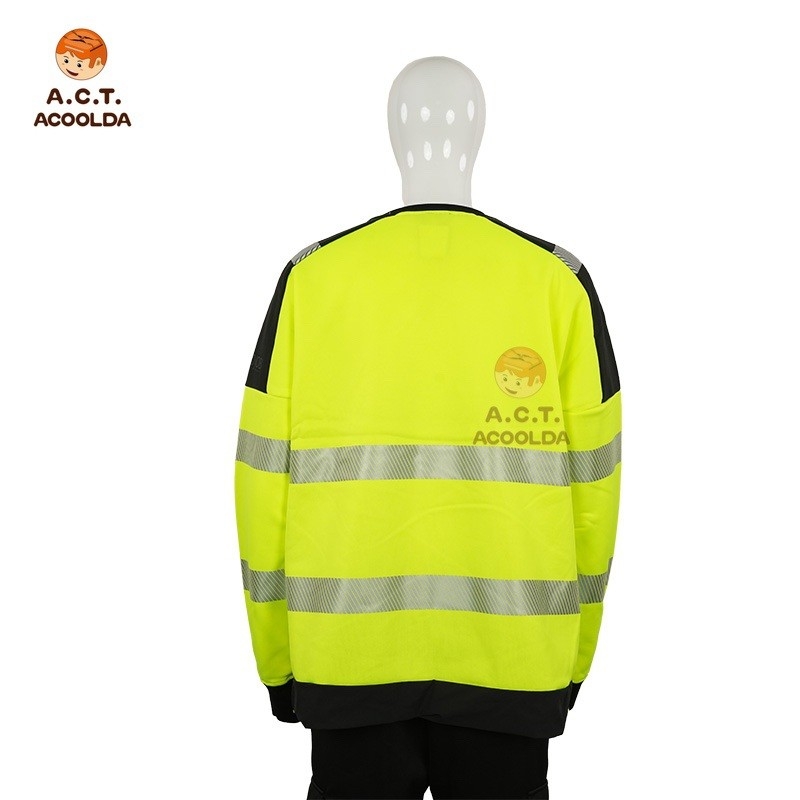 The reflective crew neck shirt is perfect for food delivery riders, couriers, and logistics staff, offering both safety and comfort during long working hours. Its reflective waist stripes improve visibility while maintaining a casual yet professional appearance.