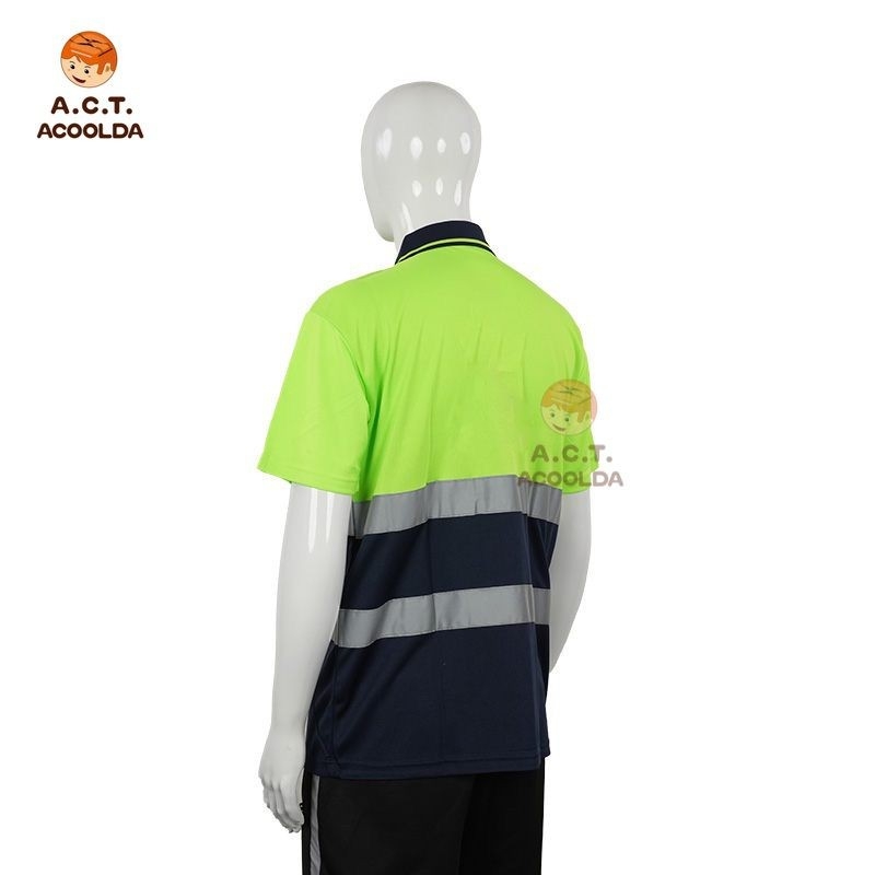 This short sleeve polo shirt with reflective stripes is designed for delivery riders, couriers, and logistics staff working in hot summer conditions. Featuring two horizontal reflective bands around the waist, it ensures visibility in low-light environments while maintaining a professional appearance. Made with breathable, lightweight fabric, it keeps workers cool and comfortable throughout the day. With full customization options in logo, color, and size, it is an excellent choice for corporate uniforms, bulk wholesale orders, and OEM/ODM projects.