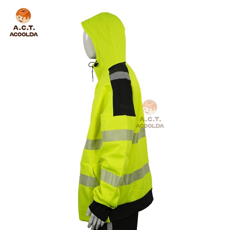 This waterproof hooded reflective jacket is perfect for food delivery riders, courier services, and logistics staff, offering both rain protection and visibility in low-light environments. Its hooded design ensures comfort and safety, making it practical for outdoor work.